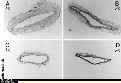 “La gravedad normalmente empuja la sangre hacia abajo, hacia los pies. Las arterias resisten el empuje”, explica Delp. “En microgravedad no hay que soportar el peso. El cuerpo responde a esa falta de fuerza remodelándose. Obsérvese lo que sucede con un levantador de pesas que deja de ejercitarse. Si un músculo deja de ser tensionado, pierde masa”.