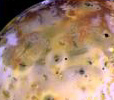 Con su apariencia de pizza gigante recubierta con queso fundido y manchas de tomate y aceitunas, Ío es el cuerpo con mayor actividad volcánica del Sistema Solar. Plumas volcánicas se alzan a más de 300 km (190 millas) sobre la superficie, hechas material que es lanzado a casi la mitad de la velocidad de escape. Es un poco más grande que la
